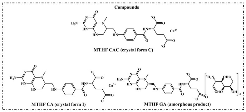 根據Zenglin Lian et al., Molecules 2021, 26(19), 6011 文獻及原料規格的發表,各代葉酸因其結晶鹽形式的不同,描述如下: